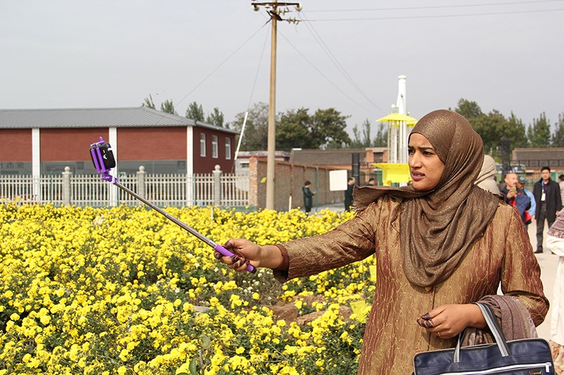 這也在拍,那也在拍,看來(lái)這些外國(guó)專家對(duì)咱們的云臺(tái)冰菊很有興趣么~各類膚色的人聚在一起共同賞菊品菊,場(chǎng)面和諧極了,看來(lái)不僅藝術(shù)能促進(jìn)各國(guó)間的文化交流,農(nóng)業(yè)照樣有聚集人心的魅力?。?/p>